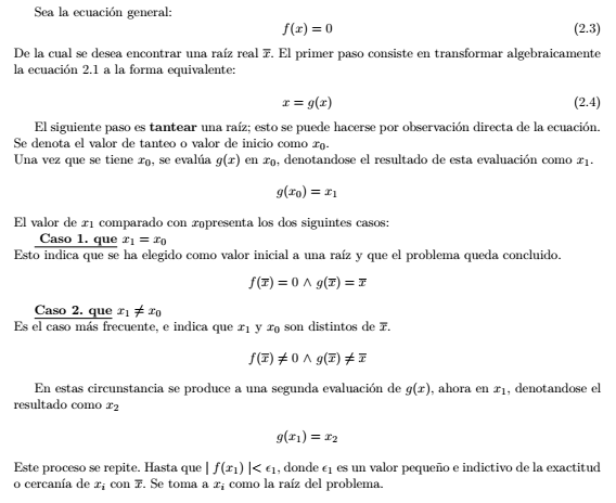 sola variable: Método de búsqueda incremental, iteraci´on de punto fijo, aproximaciones sucesivas, m´etodo