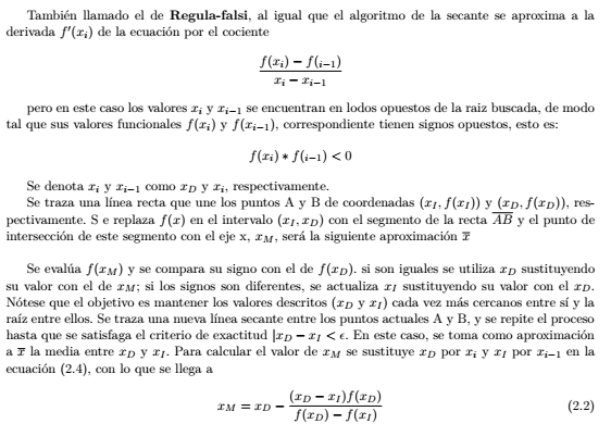 de bisecci´on, método de Regula-Falsi, m´etodo de Newton-Raphson, método de la secante, criterios de convergencia. Condicionamiento. Raíces de polinomios: Método de Bairstow, Muller. Deflación. Algoritmos.